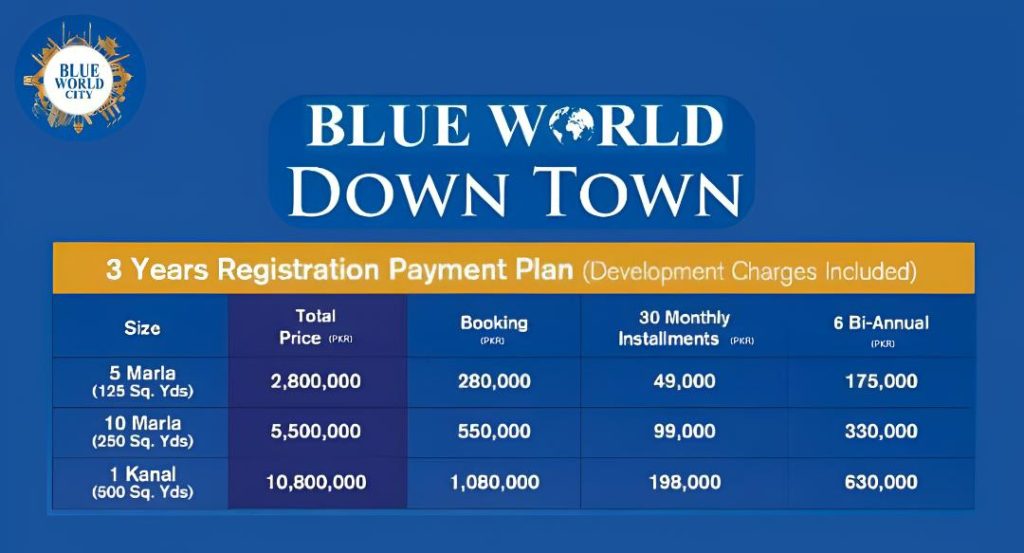 The sector features modern amenities and luxury facilities, along with close proximity to iconic attractions such as the World’s Tallest Horse Mascots, Water Theme Park, and the Burj Al Arab replica. With verified balloted plots, confirmed locations, and instant possession available after 50% payment, Blue World City Downtown presents an ideal opportunity for both premium living and secure investment.,